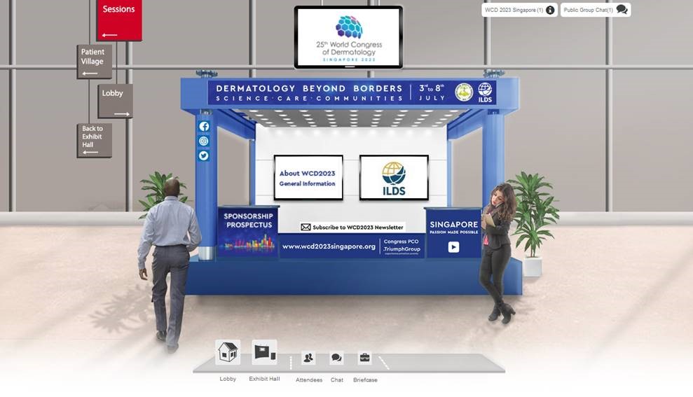 In the 3 years leading to the 25th World Congress of Dermatology in 2023, we will take part in important international conferences to promote the WCD 2023 and spread its news worldwide. A new logo has been developed, made up of geometric forms depicting the Singapore Skyline, in vibrant colours, with the details of the congress. Together with the logo, an exciting video that represents Singapore and its main features and characteristics has been produced. As we all know the COVID pandemic has resulted in many meetings being cancelled or transformed into virtual ones. For this reason, WCD 2023 accepted the challenge and took part – for the first time – in a virtual conference with a virtual booth!